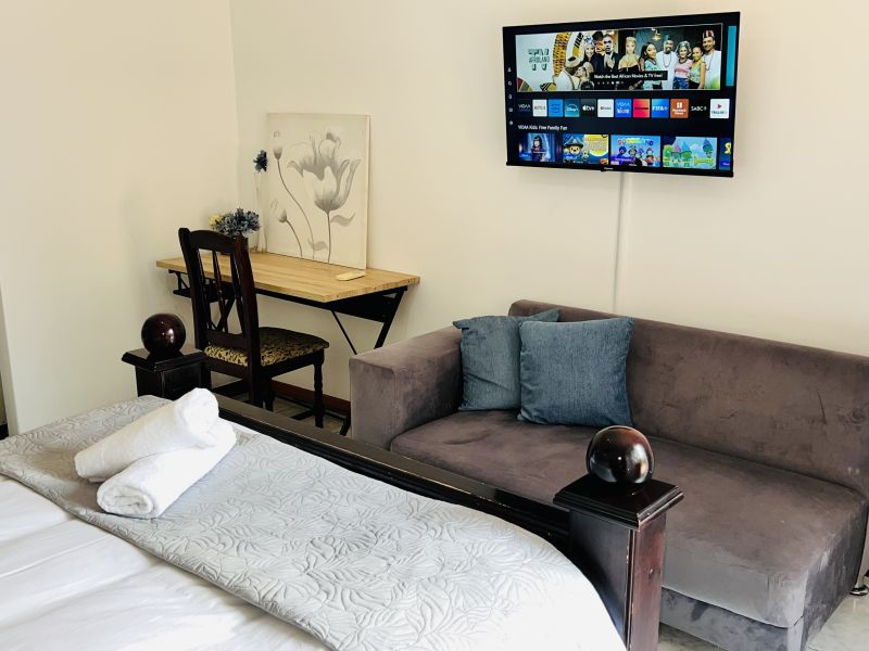 Certain units in the guesthouse have private entrance, all rooms are equipped with a smart TV, and some, a DSTV, study desk. Some rooms include a coffee/tea station, a microwave and fridge.