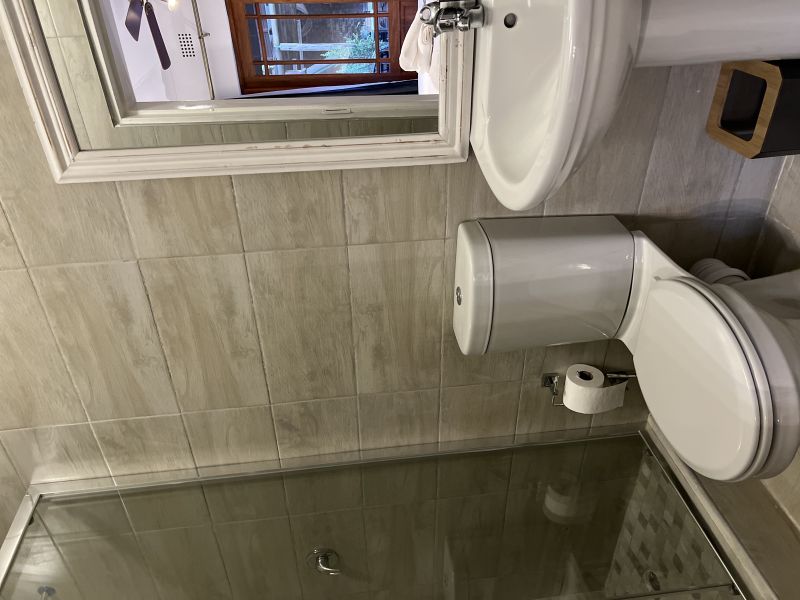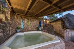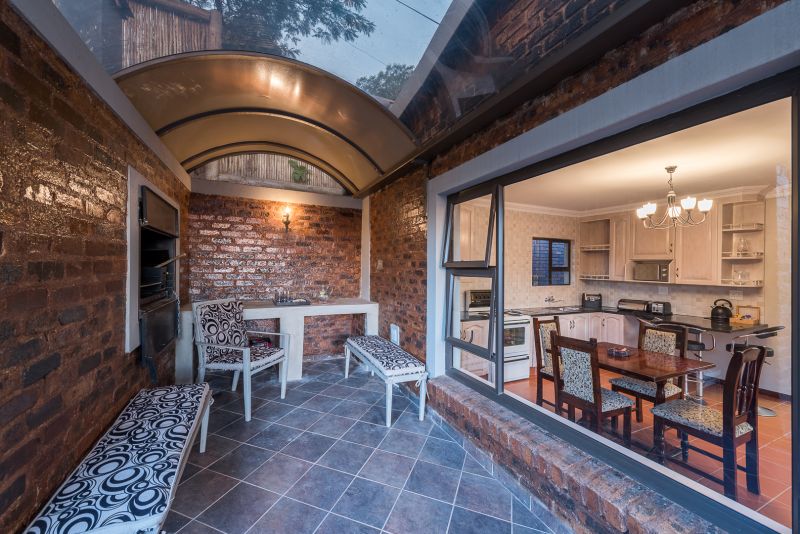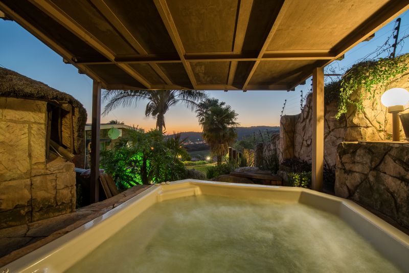 A four-sleeper self-catering unit is a cottage-style house set at the back of the main property. It is very private and secluded and offers its own Gardens. The chalet has two separate bedrooms. The main bedroom has a double bed and an en-suite toilet and shower, the second bedroom consist of two single beds. Our spacious lounge has a double sleeper couch and additional comfortable couches. The second bathroom has a bathtub, shower, a toilet, and fitted with a ceiling heat lamp for the oddly cool nights. The unit has a fully equipped kitchen with dining table and chairs, fridge, microwave and kettle, crockery and cutlery. A braai facility and the cozy patio lead you to beautiful cascading garden.