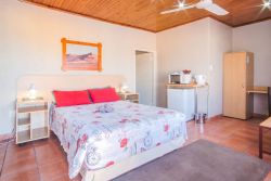 Family Room consisting of a double and a single bed. The family room can be combined with a second bedroom through interleading doors which consist of a double bed; onsuite bathroom, own bar fridge and microwave.