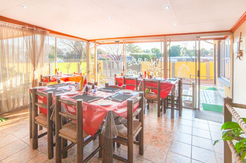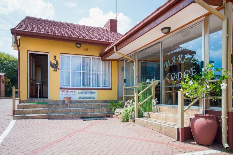 We offer 11 double en-suite rooms, each with its own entrance and beautifully finished in an African theme. Two of the rooms have an inter-leading door to cater for families or groups who wish to stay together. We also have two self-catering rooms. All the rooms are non-smoking and are equipped with kitchenettes, TVs with OVHD & Netflix. For those that are visiting our town for training purposes and need a place to study, our bedrooms are equipped with a dressing table and chair which doubles up as study space or space for your laptop. There is a Lapa with two braai areas for people who prefer an informal dinner and some fresh air. We have various outside seating areas which are great to sit at, enjoy a drink and the fresh air. Marle’ Lodge is conveniently situated next to a lovely public park which boasts with an outdoor gym and playground for the kids as well as being across the road from a filling station, convenience store, Wimpy, Standard Bank, Absa Bank, FNB ATM’s as well as courier services. There is ample secure parking with security guard/s on site and we invite our guests to make use of our licensed bar facilities, Lapa and patios where sundowners can be enjoyed. We have high-speed (WIfibre), uncapped and un-throttled WIFI that is available in all our rooms and all outside amenities. We have also installed two additional WIFI extenders that will ensure that you are never out of range whilst enjoying your stay with us. We offer assistance with scanning, e-mailing, copying etc. We have set-up a self-help internet station for those who require web access..We offer airport shuttles. There are also 3 beautiful golf courses, driving range with mashie course, supermarkets and restaurants in close proximity.