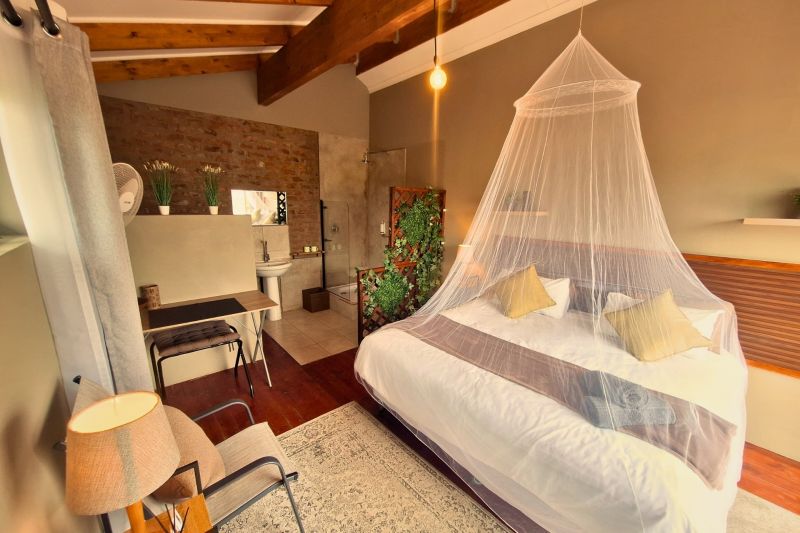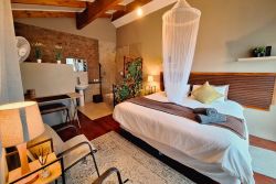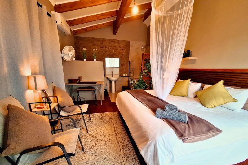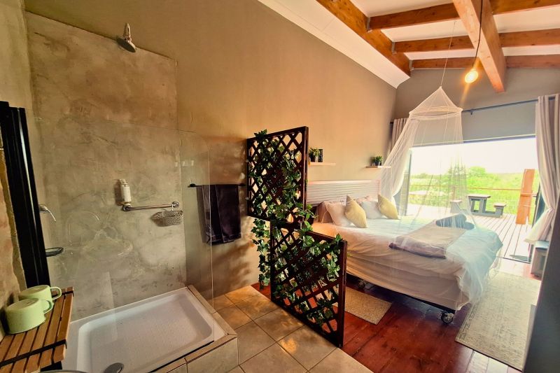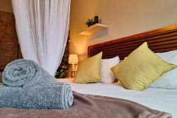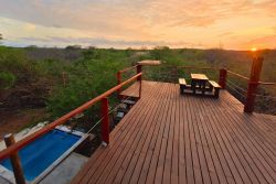 Accommodation with a private splash pool, garden view , balcony and on suite bathrooms, Marloth Park Self catering 4347 is situated in Buffel st near the Crocodile River , Kruger Park. The property is set 17 km from Crocodile Bridge, Kruger Park. 45 km from Leopard Creek Country Club and 8.2 km from Lionspruit Game Reserve. Escape to this tranquil bush holiday home, designed for relaxation and immersion in nature. Featuring two bedrooms ( One King size which you can roll out to sleep under the stars on the deck and Two 3/4 beds ) and two on suite bathrooms, it comfortably accommodates guests seeking a peaceful Retreat. The fully equipped kitchen allows for convenient meal preparation, while the non-smoking policy ensures a fresh and clean environment. Enjoy the best of outdoor living with both indoor and outdoor braai facilities, perfect for grilling under the African sky. A refreshing 2-meter splash pool provides a welcome respite from the heat, and fans are provided for added comfort; air conditioning is available upon request. An outdoor shower offers a unique and refreshing experience, blending seamlessly with the natural surroundings. The highlight of this property is undoubtedly the expansive wooded deck. Overlooking Kruger Park, it offers breathtaking views and opportunities for wildlife spotting.