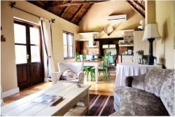Thatched character cottage with 2 luxury bedrooms each en-suite, with open plan lounge/ diningroom area, with french doors opening onto 2 seperate patios with outside BBQ facilities. The cottage is fully equipped. The most magnificent views of the Towerkop Mountain and overlooks vineyards