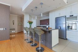 This large (200 sq m) penthouse gives new meaning to understated luxury, with its tasteful décor, and sliding doors that open onto a wrap-around balcony, overlooking the Atlantic Ocean all the way from Robben Island across the Boulevard to Lion’s Head. Enjoy lazy mornings in your double en-suite bedrooms, or an early breakfast on the secluded terrace whilst the fresh sea scents gently awakens your soul. The spacious free-flowing living room offers unobstructed, panoramic views from floor to ceiling. At the close of day enjoy spectacular sunsets with cocktails from this luxury penthouse with its inspiring artwork. Within walking distance from shops, restaurants, V&A Waterfront, Mini-golf, 9 hole golf course (South Africa’s oldest golf course – Metropolitan) and driving range. Nearby nightlife entertainment in the Green Point and De Waterkant Villages.
