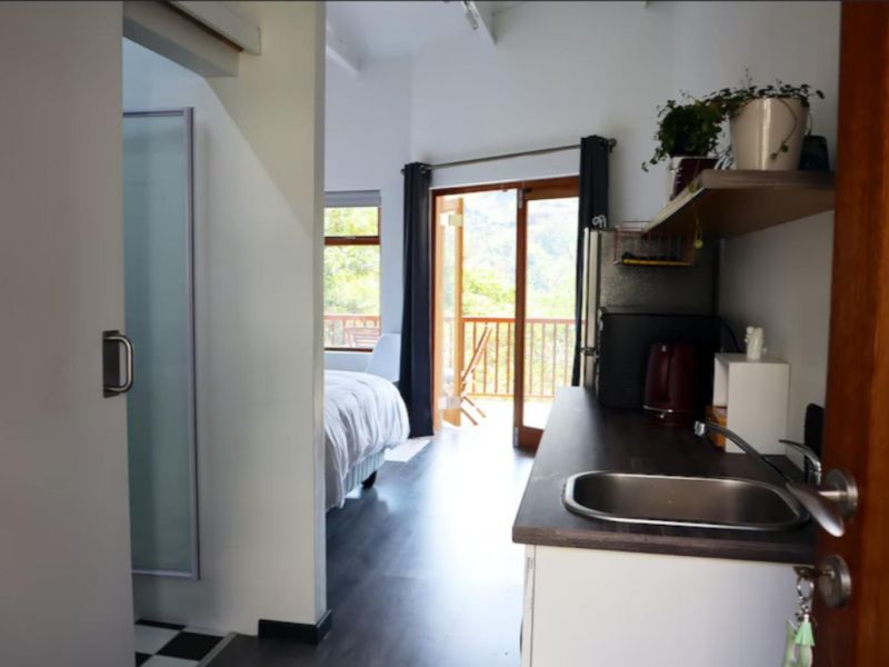 The Nkutu River Lodge offers modern, well-designed self-catering accommodation in the heart of beautiful and leafy Forest Hills in Kloof, with stunning views over the Krantzkloof Nature Reserve on the banks of the Nkutu River. Accommodation is offered in a one-bedroom second-floor apartment with a large balcony, namely High Noon, and two suites in a new building with a large shared balcony to enjoy the natural bush garden, namely Sunrise and Sunset. The units are modern and bright and offer all the comforts of home. Each unit has a private bathroom, a well-equipped kitchen or kitchenette, and a seating or lounge area. Free Wi-Fi internet access is available. Stairs lead down to a natural garden, among indigenous trees, the ideal place to enjoy the peace and quiet and the bird life of the area. Parking is available on the premises.