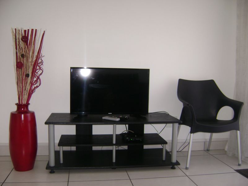 The living area is open-plan, The lounge has a comfortable sofa and there is a TV with DStv Compact Bouquet and a sliding door opens onto a balcony, where views of the surroundings can be admired.