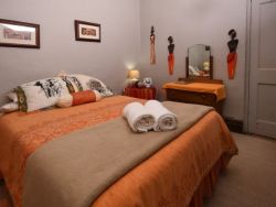 Bed: Queen & Two Singles. Occupancy: 4 Pet friendly, self catering room with a fully fitted rondawel kitchen adjacent set in the Oban Historical Guest House garden. Has a braai area and a private fenced pet friendly garden suitable for small to knee high socialized dogs. We request that animals are kept on a leash when walking around in the communal areas. Family room layout is comfortable for a couple and option of additional two people sharing, with a queen and two single beds. En-suite bathroom with bath . Self catering rondawel kitchen with utensils, toaster, kettle, microwave and fridge freezer and four plate gas stove. Guests can enjoy all hotel facilities including complimentary wi-fi, the Pub, Restaurant serving breakfast, lunch and dinner. Rustic Country Garden, children’s playground, children’s play room, animal farm and swimming pool. Bring your fishing rods and try your luck at one of our three dams or be adventurous and take a swim in the dam which is fed with crystal clear spring water from our four springs on top of the hill. Sporty? Bring your mountain bike and running shoes and challenge yourself up the hill through the boulders or just around the farm and enjoy the crisp mountain air and stunning views. Then take a shower and head to the restaurant where Mildred is waiting for you with a hearty breakfast where you can plan the rest of your adventurous day. If the weather is not cooperating we have plenty of board games, card games and a cozy crackling fire in the lounge to keep even the grumpiest teenager entertained. Please note that the rate is per person sharing. Child Rates: 0 - 2 Free 3 - 14 50% of adult rate Over 14 full price