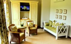 The Suite has a separate lounge and bedroom with en-suite bathroom with separate showers and baths and heated towel rails. The bathroom also boasts a private outside shower overlooking the golf course. The room is equipped with DSTV, Telephone, Minibar with Snacks, Air-condition, Heater, Coffee & Tea Facility, Hairdryer and Bathrobes and a fireplace in each room.