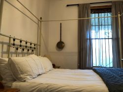 Stepping into Quince Cottage is like stepping back in time, but with all the comforts you desire for a truly enchanting Karoo escape. This traditional old house, brimming with authentic antiques and interesting pieces, offers a genuine taste of Nieu Bethesda life. Imagine waking up to views of the surrounding fields and gentle "koppies" (small hills), with the crisp Karoo air invigorating your senses. Quince Cottage is the perfect haven for families or friends seeking a peaceful break from city life. It comfortably sleeps up to seven guests across three charming bedrooms, featuring comfortable double beds and a family room with a bunk bed and single bed. The heart of the home is its cosy lounge, complete with a welcoming fireplace – perfect for those cooler Karoo evenings spent sharing stories and laughter. The spacious, well-equipped self-catering kitchen means you can enjoy home-cooked meals at your leisure, perhaps after stocking up on local delights from the village. Outside, a covered veranda invites you to relax with a cup of tea or a Sundowner, watching the world go by at Nieu Bethesda's unhurried pace. The enclosed garden boasts braai facilities, promising memorable evenings under the unbelievably clear, star-studded Karoo sky. And for those travelling with furry friends, you'll be delighted to know Quince Cottage is pet-friendly by arrangement, ensuring no family member is left behind. Situated close to the village's main attractions, including the famous Owl House Museum and charming eateries, you'll find everything easily accessible on foot. Quince Cottage offers that unique blend of rustic charm, comfort, and a truly authentic Nieu Bethesda experience that will leave you refreshed and inspired.