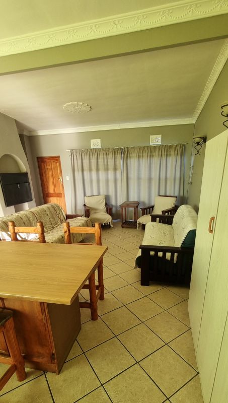 This apartment has 1 large bedroom & an en-suite with a shower only. Bedroom consist of one Queen bed and two Single beds, there is also two sofa beds in the living area with the open-plan kitchen. In the living area there is also a braai facility. The flat is equipped with linen and towels (Not for swimming). The self catering apartment boasts with a toaster, kettle and microwave in the kitchen.