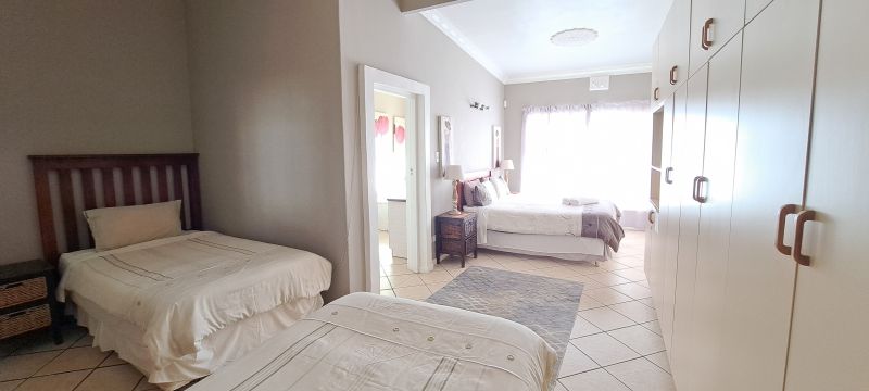 From the dining room you will have a view over the sparkling swimming pool, surrounded with palm trees and a braai facility. Enjoy the tranquil atmosphere. Ideal for sundowners or quiet relaxation.