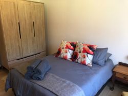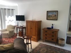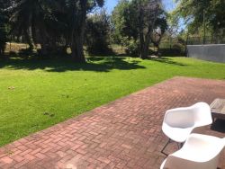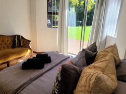 Elegant two-bedroom hideaway nestled on the banks of the Eerste River in picturesque Stellenbosch. Enjoy a fully appointed separate kitchen and a sleek private bathroom with a modern walk-in shower and premium amenities. Located close to the town centre (2 km), with easy access on foot via a well-maintained path. Elegant Accommodations: River Front in Stellenbosch offers a recently renovated guest house with a beautiful garden and free WiFi. Guests can relax in the outdoor seating area or enjoy the picnic spots. An upmarket and safe neighbourhood with 24-hour security, including electric fencing surrounding the property, that is linked to a private security company.