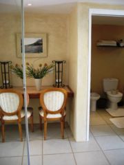 Rocky Beach Self Catering Apartment is situated near Boulders Penguin Beach at the sea on the Cape Point Route in Froggy Farm, Simon's Town. It is a luxury, very private, peaceful, fully equipped up-market Self Catering sea holiday apartment with superior finishes, which sleeps two adults. Relax on your own private sheltered sunny patio with 180o uninterrupted sea views of False Bay. Sip cocktails while watching the every changing sea for whales & dolphins. The spacious patio is great for entertaining and has braai facilities & a luxurious sun bed for relaxing.