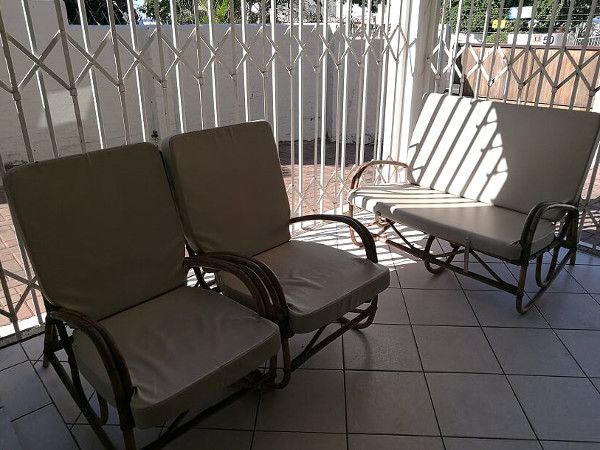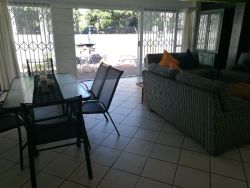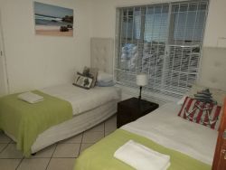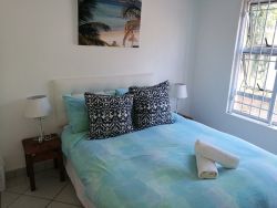 Sea Breeze Situated in the holiday mecca of Umhlanga Rocks is this unit which has four spacious rooms and a great entertainment area. You are literally across the road from the glorious Indian Ocean and beautiful beaches, which can be enjoyed all year round. You can also take a leisurely stroll to the main shopping/restaurant/pub and other amenities area without needing to find parking, etc. The main unit sleeps up to six people in three bedrooms. Two rooms have single beds. The main bedroom has a queen bed and an en-suite bathroom with a large shower. There is another bathroom with a bath. Lounge and open plan dining area are spacious and comfortable. There is a modern kitchen with a dishwasher and washing machine and all other necessary appliances. Outside your front door is a patio area with a built-in braai and garden furniture for an evening under the stars. Also included in your stay is full DSTV, FREE Wifi, air-conditioning, ceiling fans, bath towels and a daily service (except for Sundays and Public Holidays) – what more could you want? The property is very secure with an entrance that is yours alone and onsite parking for your cars and visitors. You are welcome to bring small pets with you. There is also a one bedroom (business room) flatlet adjoined to the main unit which has its own access, TV and bathroom (shower only). It sleeps two people on double bed. This unit also has fans and air-con to accommodate you in the summer months.