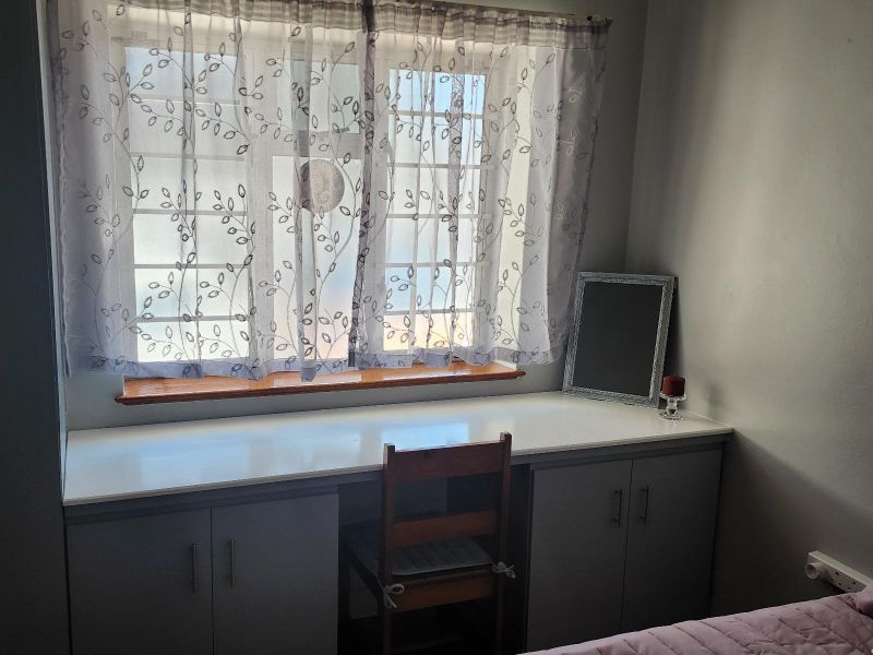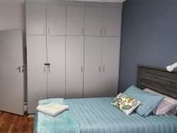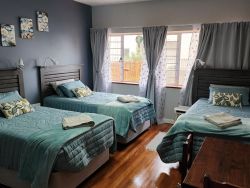 The rooms are furnished with comfortable queen-size and three-quarter beds and the apartment has a private bathroom with a shower, toilet, and wash basin. The kitchen has a stove and oven, microwave, fridge-freezer, tea and coffee-making facilities, a washing machine, and a tumble dryer. Meals can be enjoyed at the dining table, and the lounge has comfortable chairs and a TV with streaming services. Unlimited Wi-Fi access is available. The apartment opens to a patio that leads to a lovely garden area, outdoor seating, and braai facilities.