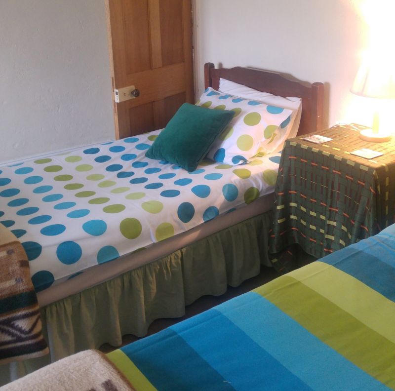 One bedroom self-catering cottage with 2 stack beds ( suitable for children ) in the large living area. Kitchen with fridge, double hotplate, microwave, toaster, kettle, crockery & cutlery. Bathroom with a shower. No TV. Lovely mountain views. Huge garden where you can park your car. 5 minutes walk to the town centre.