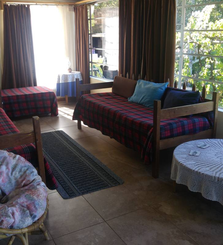 See-View House is located close to the city centre, within easy walk to galleries, shops and restaurants. From the big garden, guests can enjoy lovely mountain views and there is also a braai area, many fruit trees and safe parking. When you book, YOU GET THE WHOLE HOUSE . The House is a large family home that sleeps up to ten people. This unit comprises three bedrooms and two full bathrooms, two lounges, a fully equipped kitchen, and a huge enclosed veranda .No tv. There are 4 extra single beds.