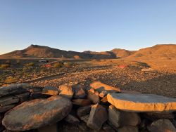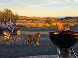 Skoorsteenberg Farm offers a quintessential Karoo escape, a place where guests can truly disconnect and immerse themselves in the quiet rhythms of the veld. Situated on the slopes of the Skoorsteenberg mountain, the working farm provides a variety of accommodation options, from comfortable self-catering cottages to two distinct camping experiences. It's a destination where the rugged beauty of the Tankwa Karoo takes centre stage, with a sense of place that is both stark and profoundly beautiful. For those seeking a home-away-from-home in the middle of this dramatic landscape, the farm's three-bedroom cottages are an ideal choice. Each cottage is fully equipped for self-catering, sleeping up to six guests across three bedrooms. One bedroom features a double bed, while the other two have twin beds, making them perfect for families or groups. With an en-suite in the main bedroom and a separate shower and toilet for the others, comfort is well catered for. A fully equipped kitchen and lounge open onto a verandah, providing the perfect spot to enjoy the magnificent views and vibrant sunsets that the Karoo is famous for. The family-friendly campsite at Skoorsteenberg is a welcoming space for those who prefer to pitch a tent under the wide African sky. This site is designed for a relaxed atmosphere, with essential facilities and amenities to ensure a comfortable stay. Guests can enjoy a communal braai area, and a swimming pool is available to cool off in the Karoo heat. With animals wandering the farm and plenty of space for kids to roam freely, it’s a wonderful place for families to unwind and reconnect with nature. For the more adventurous souls, Skoorsteenberg also offers a wild camping experience. These remote campsites provide a true off-grid experience, with uninterrupted views and total immersion in nature. Here, the absence of modern distractions allows for magnificent stargazing and a deep sense of stillness. Guests can hike rugged trails in search of ancient San Rock Art, following in the footsteps of the "Boesman" who once roamed this land. This is the Tankwa at its wildest, a place to embrace solitude and the raw, untouched beauty of the landscape.