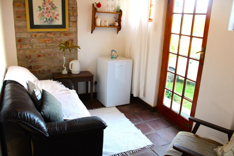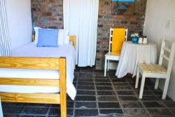 Closest to the Dining Hall this unit has a bedroom, lounge and en-suite bathroom, with a small stoep and private entrance. As there is a kitchen in the guest house, this unit offers coffee & tea facilities and a fridge inside.