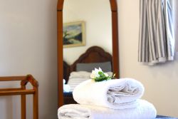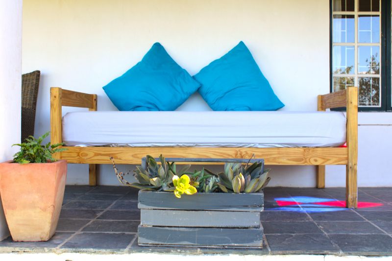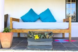 Closest to the Swimming pool this unit has a bedroom, lounge and en-suite bathroom, with a small stoep and private entrance. As there is a kitchen in the guest house, this unit offers coffee & tea facilities and a fridge inside.