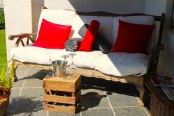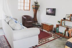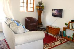 Our self catering unit, called Bear Hug, has an open plan kitchen with dining and lounge areas, as well as its own private patio overlooking the lush garden. The en-suite bedroom has a double bed, while the large loft en-suite bedroom boasts capacity for 5 single beds. The kitchen is fully equipped with gas stove, fridge, cutlery, crockery, pots and pans.