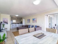 Sun and Surf is a stylish second-floor apartment located in the secure Dolphin Ridge complex in Big Bay, perfect for up to 4 guests looking for a peaceful retreat. The apartment offers 2 comfortable bedrooms and 2 bathrooms. The main bedroom is equipped with a queen-size bed and an en-suite bathroom with a shower. The second bedroom also features a queen-size bed, with the second bathroom offering both a bath and a shower. The fully equipped kitchen is ideal for self-catering, with a stove, oven, fridge-freezer, and microwave, as well as cutlery and crockery. The open-plan living area includes a dining table, cosy seating, and a TV for entertainment. For added convenience, a large lock-up garage is available, perfect for storing surfing and kite-surfing gear, bicycles, or other holiday equipment. The apartment is just across the road from Eden on the Bay, within walking distance of restaurants, shops, and the beach. Guests can also enjoy the vibrant kite-surfing season, where the sky is filled with colourful kites from surfers around the globe.