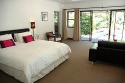 Separate kitchen, finished in travertine overlooking small courtyard. En-suite bathroom finished in slate with halogen lighting. Open plan lounge and bedroom area with patio doors opening out onto outdoor entertainment area overlooking koi ponds. Floor to ceiling fitted cupboards, leather sofa, LCD plasma television.