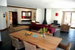 Open plan kitchen and lounge finished in natural slate with patio doors opening out onto an elevated outdoor entertainment area overlooking gardens and pool. Two large bedrooms both with patio doors, fitted with floor to ceiling cupboards. The en-suite bathrooms are finished in natural slate with halogen lighting. Living area furnished with two leather sofas, LCD plasma television and hi-fi.