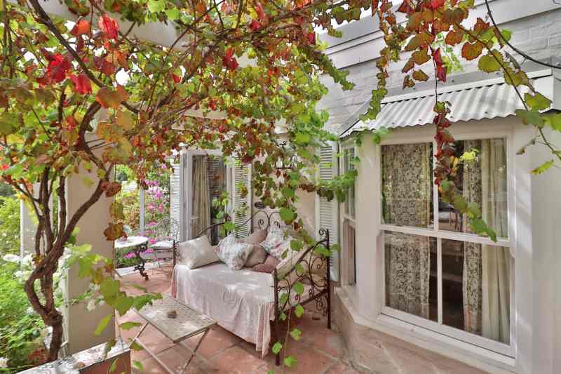 Vineyard is a lovely, sunny, light, stylishly furnished double en-suite room with its own private patio, overlooking the lush garden and pool area. The day bed is the perfect place to relax and just listen to the bird song and sound of the water feature. The bathroom has a bath and a shower.
