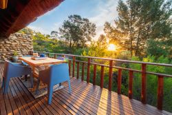Mountain Cabin is a self-catering wooden chalet located on a private farm, situated in the Tulbagh Wine Valley and at the foot of the Witzenberg Mountains. The cabin is comfortably furnished and offers accommodation for 4 people and is the ideal hideaway for a tranquil break from city life. This wooden chalet consists of 2 bedrooms and 1 bathroom. The main bedroom is a loft area and is furnished with a queen-size bed. The second bedroom is on the ground floor and is equipped with 2 single beds. The open-plan lounge and kitchen contains a fridge, a microwave, and an oven with a stove. The lounge area leads out onto a stunning wraparound terrace that offers uninterrupted views over the valley below where you can see Springbok graze and alos of the stunning Mountains. BBQ facilites are also on the premises for those late afternoona and evening braais. There is also a small river running past the cabing giving that sense of peace and tranquitlity. Witzenberg also has a function veniue where there is a outdoor swimming pool should the kids like to go for a swim. The farm is also host to occasional Springbok and Rooihartbees which you can see from your terrace. Mountain Cabin is located a drive from various nature reserves; 15 minutes drive from Tulbagh, Wolseley, and Ceres, and an array of outdoor activities.