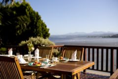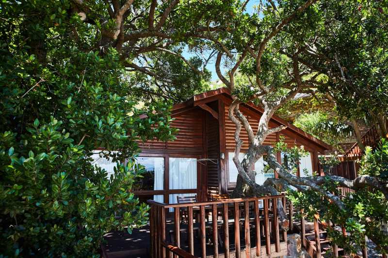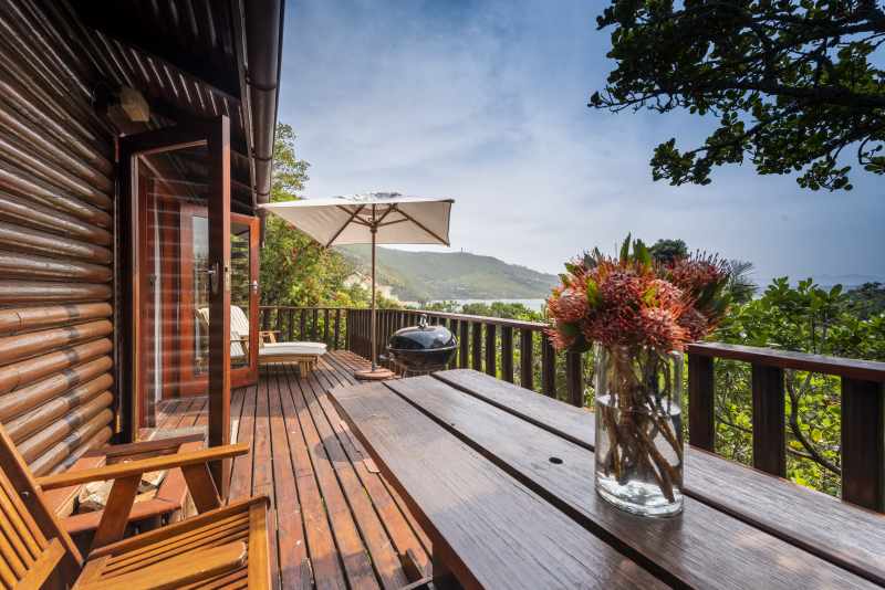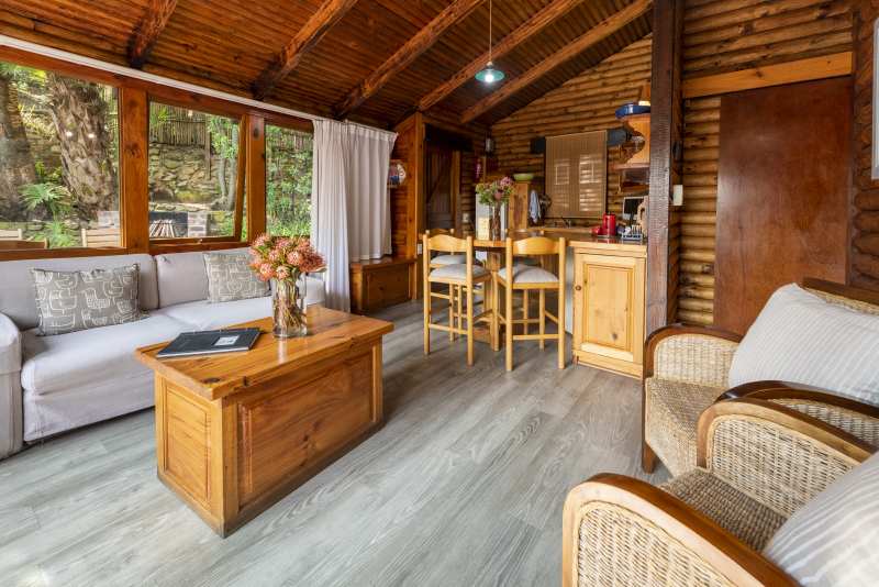 On the shores of the famous Knysna Lagoon, lies a village of timber log chalets amongst majestic Milkwood trees. The tranquil resort offers guests a haven of leisure and comfort, with wonderful views of the lagoon and the Outeniqua Mountains in the background.