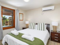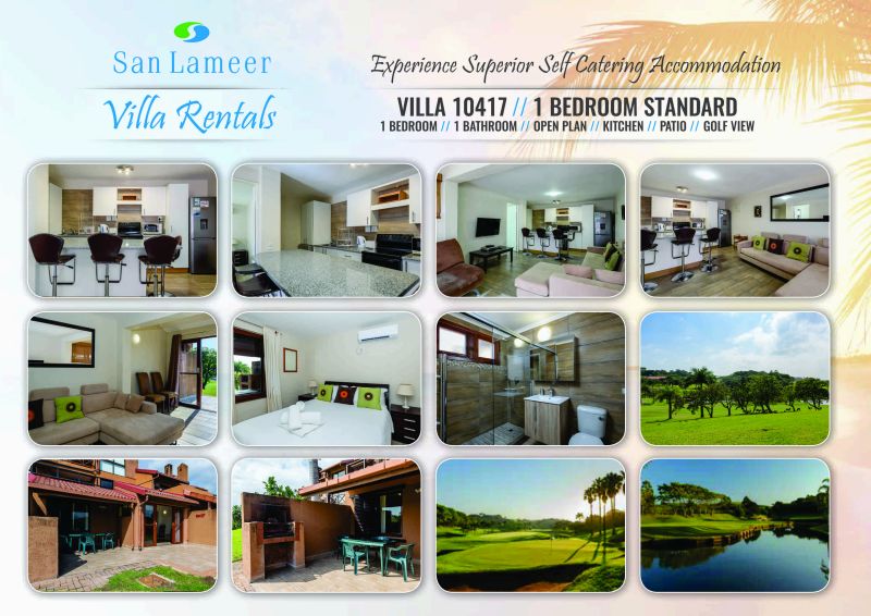 1 Bedroom (1Q) , 1 Bathroom (Shower) with golf course view. Open plan lounge, dining room and kitchen. Sleeper couch in lounge, . Equip with aircon , dishwasher, microwave , TV and Wi-Fi . Ground floor with patio and braai . Steps going down to villa.
