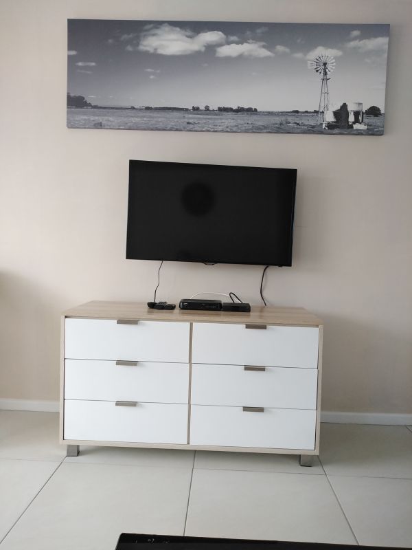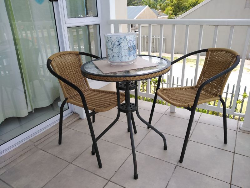 The living area is equipped with a Television and has full DSTV, ( an open view decoder is also available for use.). The living area leads out onto an outdoor balcony. The balcony overlooks the N2 and has its advantages when festival activities take place in Sedgefield, enabling one to see these events from the comfort of the balcony.... Road races, the cars participating in the Simola Hill Climb or the Slow Festival Street Parade. A Weber is available for braaing (special request - NO WOOD FIRES PLEASE ).