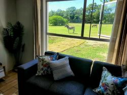Get away from a busy life and reconnect with nature and loved ones at the unforgettable Wild Paradise Cottages. Situated on a 6-hectare plot surrounded by nature and wildlife, next door to Kragga Kama Game Park, where you can hear the lions roar in the evenings, close to friendly family activities, beaches, and restaurants, and only 3 km from the town and shopping centre. The perfect getaway for couples, business travellers, and families, guests have a choice of 2 self-catering cottages and a load-shedding free chalet, all with Wi-Fi access. Spa treatments, game drives, and tours can be booked before arrival at an additional cost. Each of the lovely cottages offers two bedrooms that are furnished with a king-size or queen-size bed, while the second contains a bunk bed or two single beds, sharing the use of a bathroom fitted with a shower and a toilet. The open-plan kitchens are fully equipped with a 4-plate stove, air fryer, microwave, fridge, tea and coffee facilities, and a washing machine, and meals can be enjoyed at the dining table. The lounge has comfortable seating and a TV with streaming services. Portable braais and outdoor seating are available. The 5-sleeper chalet has an inverter and solar panels to ensure a stay without loadshedding. Located separate from the cottages, the chalet has a covered patio with outdoor seating, a portable barbecue, and undercover parking. Comprising 3 rooms, 1 room contains a queen-size bed, the second has a double bed, and the third room is furnished with a single bed. The rooms share a shower-only bathroom. The open-plan living area offers comfortable seating, a TV with streaming services, Wi-Fi, and a cosy fireplace. Meals can be enjoyed at the dining table, and the separate kitchen is fully equipped with a stove and oven, an air fryer, a microwave, tea and coffee facilities, and a fridge. The accommodations overlook the free-roaming springbuck, zebra, blesbuck, Blue Wildebeest, and Speedy the tortoise, who calls Wild Paradise Cottages home, and parking is available.