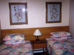 Two-bedroomed self-catering apartment, one room with queen-size bed and the other room with twin single beds, plus a sleeper couch in the living room. (For groups of up to 7 guests, this unit can be booked together with the one room 2- sleeper apartment.) Long stay discounts apply for stays of 2 nights or longer.