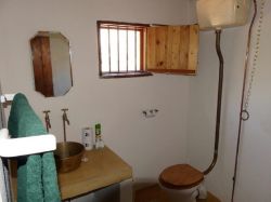 Rustic, 1-roomed self-catering stone cottage with twin single beds which can be converted into a kingsize bed (on request). Bathroom with shower, basin, toilet. Kitchen with single gas plate, small electric fridge. Candles for lighting.