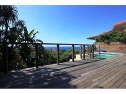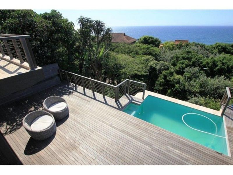 The ultimate position in Zimbali Coastal Resort - Milkwood Street. The beautiful family holiday home is situated only a stones throw from the beach. The privacy and spacious open plan design embrace the indoor/outdoor lifestyle enjoyed in Resort. This stylist home epitomizes privacy and exclusivity, commanding panoramic sea views of the Indian Ocean, surrounded by spectacular natural scenery. The gourmet kitchen provides the ideal setting for lavish self catering entertaining and the magnificent lounge, dining areas seamlessly flow onto a lovely wooden deck. This home has a main en-suite bedroom with a further 3 bedrooms and 2 bathrooms. There is also an en-suite outbuilding guest room to be enjoyed. The modern décor and quality of finishes throughout makes this a holiday home of distinction. The unit is a tranquil getaway from the rigours of everyday life.