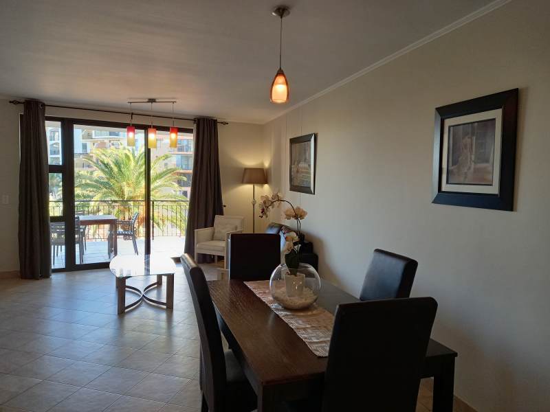 Is a spacious Two Bedroom Apartment with a fully equipped kitchen, open plan lounge dining room.This apartment is fully furnished and equipped with bedding, towels, cutlery and crockery. It has a lounge with a TV and balcony/Patio overlooking a water canal with a tropical feeling. A pedestrian bridge over the canal connects you to the shopping mall. The apartment is ideal for couple or Corporate executive who wish to stay on a daily rate or two weeks or longer in a secure and quiet enviroment with all the hustle and bustle just across the canal.