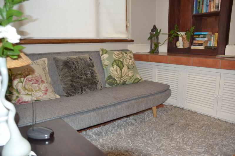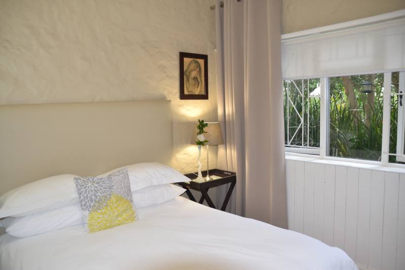 This is a family apartment and is ideal for longer stays. It consists of a bedroom with double bed and en-suite bathroom with bath and shower. Fully equipped kitchen with washing machine. A spacious lounge with full DSTV and 2 single beds. A lovely stoep with beautifull view of adjacent vineyards and Paarl Mountain. Private entrance with parking and private garden.