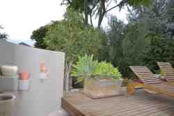 Apartment 1 and 2 is next to each other and could be used as a 2 bedroom apartment for larger groups or a family. Stoep of apartment 3.