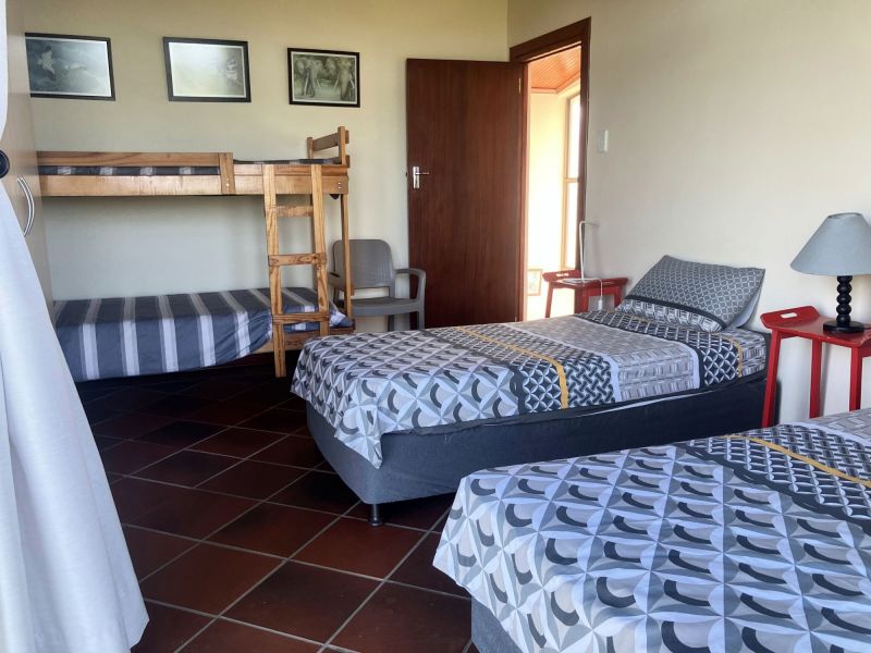 This 3 bedroom double storey house has a spacious open plan setting downstairs leading to a large wooden deck terrace. The three double bedrooms all have their own balcony from which you can enjoy the scenery around. The kitchen is well equipped with a stove, microwave, dishwasher, fridge/freezer and washing machine. There is an outside braai/barbeque. All bedding is supplied. Guests are required to bring their own towels. Satellite TV reception is available, bring your own DSTV Card. Rates vary according to the season, length of stay & number of people.