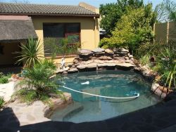 The guest house has tastefully African furniture and décor to reinforce the general cozy atmosphere. Elim B&B offers its guests an exclusive air of elegance and charm. We have a lovely patio with an enclosed swimming pool to relax, together with braai and bar facilities where businessmen will be able to unwind and feel totally at home. Our services are genuinely with a smile and Elim is the ideal place to make one's home away from home, whether your stay is for working or playing.