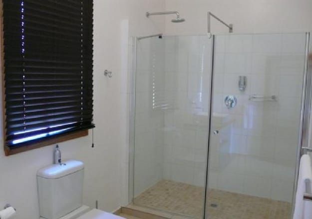 Spacious family unit with queen size bed and 2 single beds. Bathroom with shower and bath.