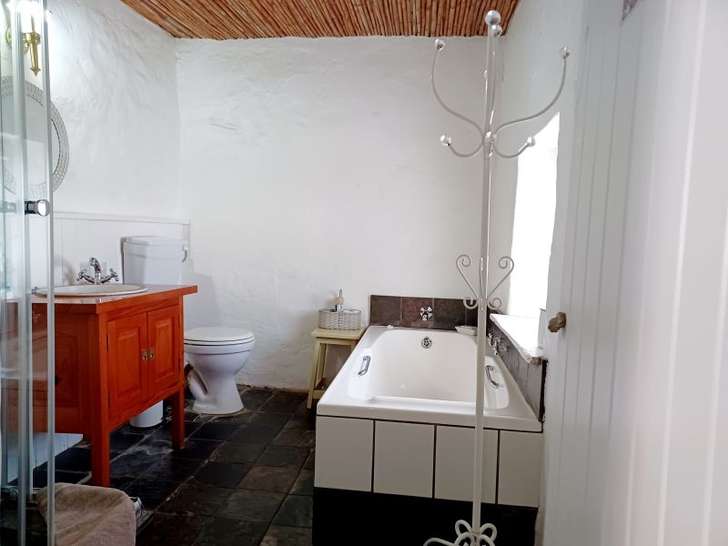 * SAKKIE-cottage sleeps 4 persons in a double bedroom and living room with two single beds. The living room also has a vintage dining table and TV with local channels. No Wi-Fi. For warm winter comfort heaters and electric blankets are provided. The FULL BATHROOM has a bathtub and a shower.