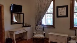 Three units are ideal for 2-3 guests, while the Fourth, can sleep a family of 4. Comfortably furnished, each room has a private entrance as well as an en-suite bathroom. Each room also has a small kitchenette consisting of a bar fridge, and a tea and coffee tray, as well as a sitting and work area. The rooms are equipped with TVs with DStv and Wi-Fi. The rooms are serviced daily, and parking is provided for a vehicle for each unit. Breakfast can be enjoyed in the sunroom, on the large stoep or the lovely garden, which is home to a variety of birds. Dinner can also be arranged on request.