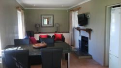 King-size bed and bunk-bed with en-suite bathroom. Open plan lounge/kitchen with a 4 seater dining table, microwave, 4 plate gas stove and fireplace and TV. Wi-Fi