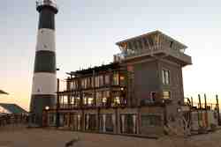 Inside Pelican Point Lodge, which is built into the converted Harbour Control Building at the foot of the lighthouse, all is spacious, relaxed and comfortable – regardless what the Atlantic weather may be outside. Nine luxurious suites offer every conceivable facility with panoramic views of the seascape. Guests are welcome to use the lounge to relax and enjoy a drink and may dine in the elegant Restaurant, or in their rooms if they prefer.