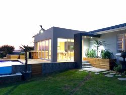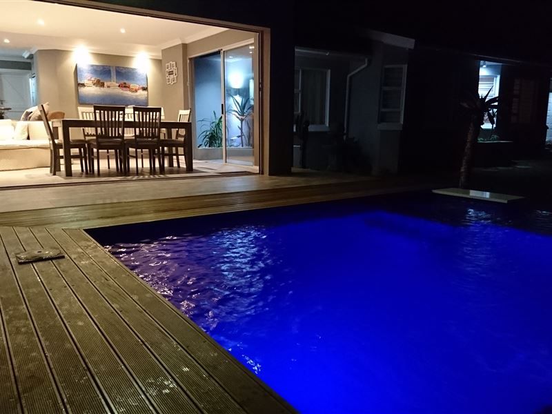 We offer a beautiful and luxury house for all your holiday needs which overlooks the Glen Eden River. (Minimum stay of 5 days)The house can accommodate up to 10 guests comfortably in 4 Bedrooms. The house encompasses a stunning open-plan kitchen, lounge, entertainment and dining area with an enclosed braai. It has a beautiful private swimming pool and Jacuzzi with wooden deck for your pleasure. It has four bedrooms with built-in cupboards, an open study and three bathrooms. Two of the bathrooms are en-suite. The Study has a double bed sleeper couch.The house has a remote controlled inter-leading double garage,and remote controlled front gate, with a huge enclosed yard. The house is very secure, and it has a full alarm system, as well as CCTV cameras around the house.The house is an eight-minute walk from the beach, lagoon. The house is on the Jikeleza Route with Big 5 game drives, traditional tribal tours, craft shops, hiking trails and breath taking views. Activities also include horse riding, quad bike rides, abseiling, great restaurants, stunning beaches, rose Gardens, kayaking, paintball and river cruises. There are great fishing spots in the sea and rivers, and deep sea fishing charters can be arranged and enjoyed in the rich Wild Coast waters. Small, well behaved dogs are welcome.