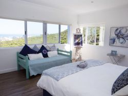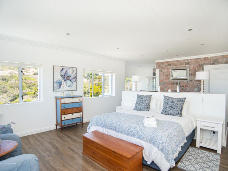 KAALVOET VILLA is the entire top floor of an upmarket self-catering holiday home with four en-suite bedrooms. Kaalvoet Villa offers you a very luxurious, spacious and beautifully decorated home with uninterrupted views of the ocean, a fynbos green belt adjacent to the house as well as Dassen Island and Table Mountain! The 4-bedroom house can accommodate 8 - 10 people: • Bedroom 1: 1 Super King bed and 1 Daybed with a bath and shower • Bedroom 2: 2 x Single beds with a shower • Bedroom 3: 1 x Queen bed with a bath • Bedroom 4: 1 x Super king bed with a shower • 1 Daybed in the living area