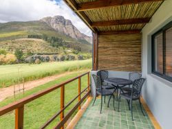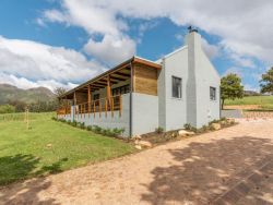 The Exclusive Cottage is a beautifully appointed 70 m² suite with contemporary finishes and furnishings, large private veranda, and fully-equipped kitchen, set on a tranquil working farm, surrounded by vineyards and mountains.