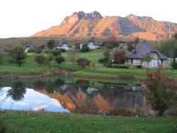 Mirrored on the tranquil waters of Lake Madingofani, this mountain resort nestles in the scenic foothills of the Southern Drakensberg. Dramatic seasons alter the scenery from lush green lawns to a winter wonderland. Built from natural material including local sandstone the chalets with their twin thatched peak roofs blend into the surroundings. Our 1 and 2 bedroom Apartments are perfect for a weekend getaway. Each fully self-catering Chalet and Apartment includes a lounge with a fireplace a spacious dining room and a braai area on the patio. Our facilities include Trout fishing, canoeing, kayaking, horse riding, hiking, mini golf, tennis, mountain biking, Children’s play area, as well as a recreation centre with a pool table, dartboard and table tennis.